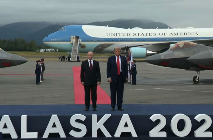 Los presidentes Donald Trump de EE.UU. y Vladimir Putin de Rusia se encontraron en la base aérea de Elmendorf-Richardson, a...